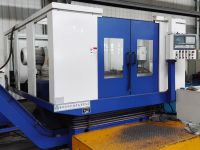 火車鉤尾框承載面加工專機,本機床為臥式單面布置,前面數(shù)控移動工作臺上安裝有回轉(zhuǎn)夾具,后面數(shù)控移動工作臺上配有專用雙軸銑削動力頭。夾具具有自動回轉(zhuǎn)及回轉(zhuǎn)到位后自動鎖緊功能,回轉(zhuǎn)角度由固定擋鐵控制,更換品種時需更換擋鐵塊。本機床主要用于13B、17型、力拓40T鉤尾框承載面的銑削加工,生產(chǎn)節(jié)拍:4分鐘/件。工件以底面、側面及尾部定位,液壓油缸夾緊。人工吊裝上下料,一次一件,液壓夾緊,數(shù)控系統(tǒng)控制,并配有獨立的液壓站、電氣柜、集中潤滑裝置。本機床加工剛性好,并適合多品種加工。